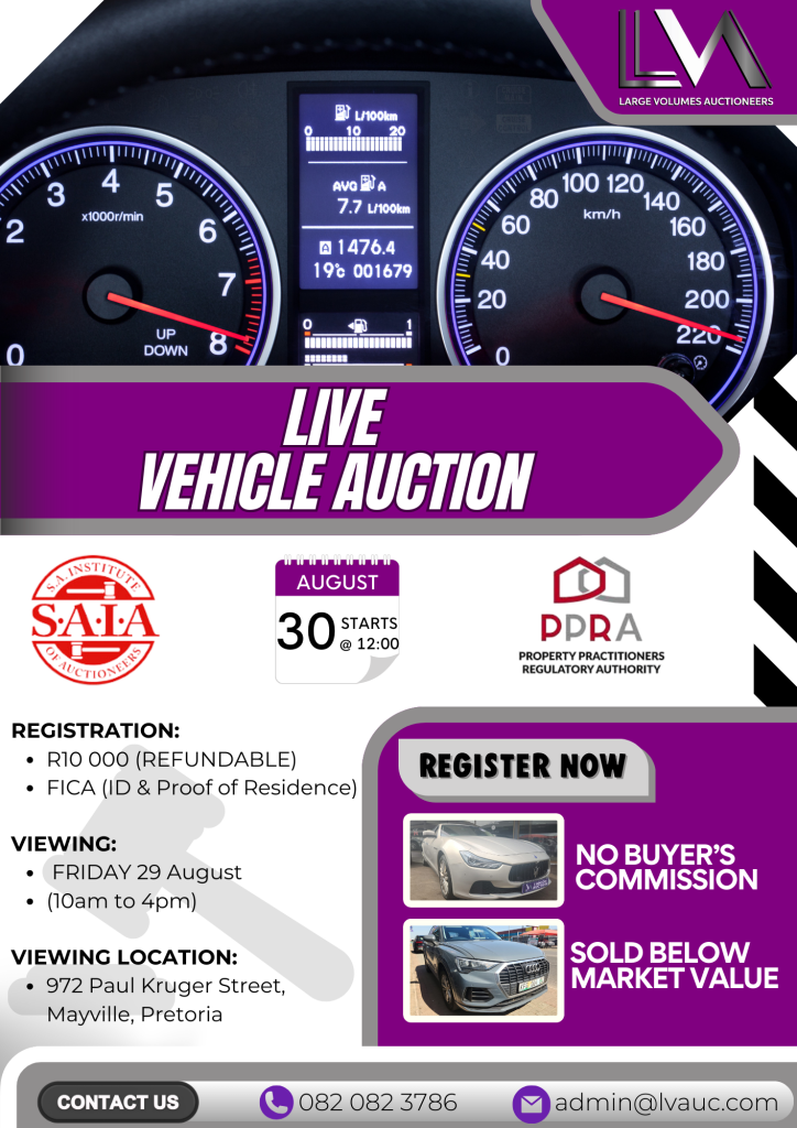 Live Vehicle Auction, This Saturday @ 12pm