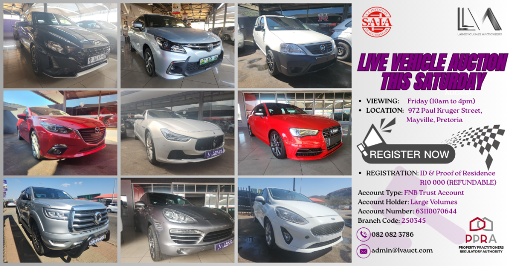 Live Vehicle Auction, This Saturday @ 12pm